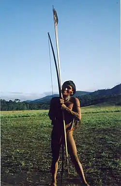 Die Bogenjagd indigener Völker beschreibt die Ausführung der Bogenjagd zur Nahrungsbeschaffung (Subsistenz-Jagd)[1][2][3] durch indigene Völker. Diese Form der Bogenjagd ist bis heute ein essenzieller Bestandteil der Jagd weltweit. Aufgrund der Verbreitung von Feuerwaffen, aber auch wegen des massiven Rückgangs von Lebensraum ist die Bogenjagd indigener Völker jedoch rückläufig.[4][5] Dagegen nimmt die moderne Bogenjagd rasant zu.[6] Die Bogenjagd heute noch jagender lokaler Gemeinschaften ist mit ihren Jagdstrategien und mit der Technik des Jagdgerätes in sehr vielen Aspekten vergleichbar mit der Bogenjagd frühzeitlicher Menschen.[7]
