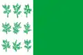 Das Wappen stellt das Bogoroditsky-Gras (9 Bündel) auf silbernem Grund in Schildform dar.[2] Selbiges erscheint im linken Drittel der Flagge (Gras auf weißem Grund). Die vertikal zweigeteilte Flagge[3] ist auf der rechten Seite hellgrün. Das Wappen ist seit dem 18. Jahrhundert in Verwendung.[4][5]