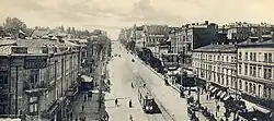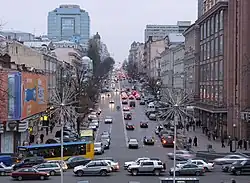 | Blick in die Bohdan-Chmelnyzkyj-Straße vom Wohnhaus Chreschtschatyk 25 | |
