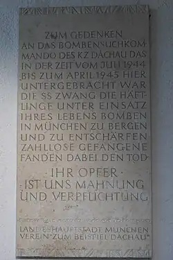 Zum Gedenken / an das Bombensuchkom- / mando des KZ Dachau[,] das