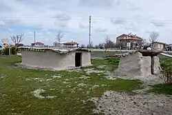 Die ovalen Häuser sind aus Lehmziegeln[13][14] gebaut und zwischen 15 und 20 m2 groß[15]. Haus I (Schnitt K) war 5 × 3 m groß[6]). Die Häuser enthalten jedoch auch Pfostenlöcher[16]. Im Nordwesten der Häuser lag eine runde Herdstelle, meist war hier der Boden schmutziger als in der höhergelegenen Fläche im Südosten, wo auch der Fußboden besser gearbeitet war[17]. Die Häuser waren relativ ortsfest, so wurde ein Haus in Schnitt K sechsmal am selben Ort und mit demselben Plan gebaut[18]. Einige Häuser enthielten bemalte Reliefs an der Nordwand[19], die Muster konnten noch nicht eindeutig gedeutet werden[6]). Fußböden wurden häufig erneuert[6]) und waren manchmal ganz oder teilweise rot bemalt[20] und, wie Phytolithen anzeigen, mit Matten bedeckt[21]. Zwischen den Häusern, im Bereich eines Abfallhaufens, wurde ein verzierter Stein gefunden.[22] Im Gegensatz zu Çatal Höyük besaßen die Häuser ebenerdige Eingänge.[23]
