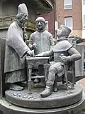 Felke-Brunnen | 1995 | Moers | Brunnen als Denkmal für den Pastor Emanuel Felke beim Behandeln einer Frau mit Lehmwickeln.