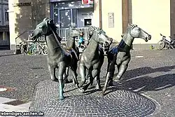 - ↑ Aachener Skulptur: Pferde stehen schief: Prozess! (Seite nicht mehr abrufbar, festgestellt im Juni 2023. Suche in Webarchiven) Info: Der Link wurde automatisch als defekt markiert. Bitte prüfe den Link gemäß Anleitung und entferne dann diesen Hinweis., abgerufen am 9. Januar 2010.