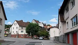 Eine Urkunde von 1369 nennt 9 Höfe. Die Entwicklung verlief bis zum Ersten Weltkrieg[14] langsam, beschleunigte sich ab 1950 mit der Erschließung neuer Baugebiete, wodurch das Dorf vorwiegend zu einer Wohnsiedlung wurde (1613: 10, 1660: 5, 1742: 10, 1803: 17, 1828: 26, 1861: 48, 1900: 61, 1925: 68, 1950: 87, 1961: 109, 1968: 167, 1970: 189 Häuser[15]). In diesem Zusammenhang veränderte sich der landwirtschaftliche Charakter des Siedlungsbildes. Die unbebauten Flächen werden heute vorwiegend als Pferdeweiden und Streuobstwiesen genutzt. Von der einst als Erwerbszweig wichtigen Steinindustrie[16] zeugen noch zwei Steinbrüche südlich des Zigeunerkopfes (359 m) im Granodiorit (s. o.).