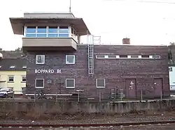 Daher wurde der Turm in den Jahren 1906–1908 abgebrochen und mit dünnerer Mauer nördlich seines alten Standpunktes wieder aufgebaut.[5] Im Jahr 1908 wurde die Strecke eröffnet. Auf dem Teilstück Boppard – Boppard-Buchholz überwindet die Bahn einen Höhenunterschied von 336 Metern und gehört somit auch heute noch zu den steilsten Adhäsionsbahnen Deutschlands. Im Zuge der Versetzung des Säuerlingsturm wurde dieser zu einem Wasserturm ausgebaut. Am 10. Februar 1914 wurde „mit Eintritt der Dunkelheit“ für die Einführung der Hunsrückbahn in den Bahnhof ein neues „Doppellichtvorsignale“ in Betrieb genommen, das dem heute noch gebräuchlichen Modell des Formsignals entsprach.[6]