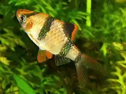 - ↑ a b A. Zarske (2008): Zur Identität der Sumatra- oder Viergürtelbarbe. Aquaristik Fachmagazin 39 (6): S. 4–12 PDF