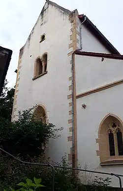 Die Kirche wurde 1241 erstmals erwähnt und 1690 von französischen Truppen teilweise zerstört. Insbesondere der Turm mit Wandmalereien aus dem 13. Jahrhundert blieb jedoch erhalten. Er beherbergt auch die älteste Glocke Rheinhessens.