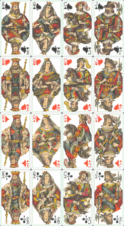 - ↑ Sylvia Mann: All Cards on the Table. Leinfelden: Deutsches Spielkarten-Museum, 1990. S. 67, 83 & 315.