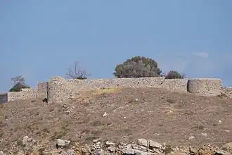 Außerhalb der Burg gibt es noch Reste einer älteren Befestigung und einer Siedlung. Hier fand man als Streufunde ein Hexagramma des Konstans II., Bronzemünzen des Herakleios und des Konstans II. und einige Tonscherben. Anhand dieser Funde geht man davon aus, dass die baulichen Reste aus dem 7. Jahrhundert stammen. An der Westküste entdeckte man eine kleine, byzantinische Zisterne von etwa 1,30 × 1,70 m, die mit wasserdichtem Mörtel verputzt war. Zahlreiche aufgefundene Knochen belegen eine spätere Verwendung als Grabmal.
