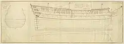 | Design | 28 × 32-Pfünder | 30 × 18-Pfünder | 30 × 12-Pfünder | 2 × 6-Pfünder | 8 × 6-Pfünder | 98 Kanonen (420,85 kg) |