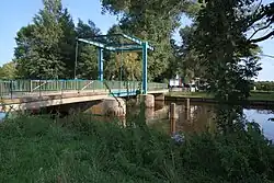 Die Klappbrücke über die Hamme in Neu Helgoland wurde als Stahl-Zugbrücke 1958 gebaut.[1] Sie wird nur nach rechtzeitiger Voranmeldung von der Gemeinde Worpswede geöffnet.