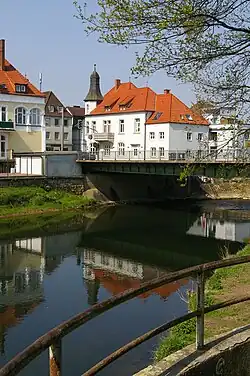 Auf dem letzten Abschnitt bis zur Mündung der Aa in die Werre überquert die Schillerbrücke an der Schillerstraße die Aa. Im Jahr 1878 wurde an dieser Stelle eine hölzerne Brücke gebaut, die den Namen Bügelbrücke erhielt und 1905 in Schillerbrücke umbenannt wurde.[4] 1931 wurde sie erneuert und 1970 verbreitert. Wegen Schäden an der Brücke konnte sie seit 2011 nur noch einspurig befahren werden. Ab September 2018 wurde die Brücke abgebrochen und durch einen Neubau ersetzt, der 2021 in Betrieb ging.