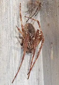 - ↑ Larinioides sclopetarius, araneae, abgerufen am 19. Februar 2019.