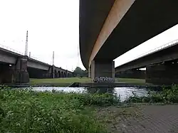 Ganz im Westen der Ruhraue verbindet die Aakerfährbrücke als vierspurige Straßenbrücke die Duisburger Stadtteile Duissern und Meiderich.