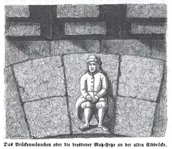 - ↑ Vom Brückenmännchen zu Dresden. In: Johann Georg Theodor Grässe (Hrsg.): Der Sagenschatz des Königreichs Sachsen. Band 1. 2., verbesserte und sehr vermehrte Auflage. Schönfeld, Dresden 1874, S. 88–89 (Digitalisat auf Wikisource).