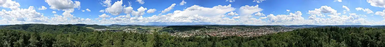 Richtung Norden und Westen erblickt man grosse Teile von Winterthur. Ansonsten sind vor allem die Wälder rund um den Brühlbergturm zu sehen.