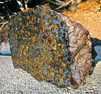 Chemische Zusammensetzung: 36,5 % SiO2; 13,7 % FeO; 43,2 % MgO; 0,3 % MnO; 3,82 % P2O5