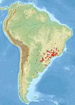 Insbesondere Nachweise aus Uruguays Hauptstadt Montevideo und Argentiniens Hauptstadt Buenos Aires gehen vermutlich auf verschleppte und eingebürgerte Tiere zurück, die mittels Bananenimporten in diese Städte gelangten.[12] Durch Unklarheiten in der Synonymie und Namensverwendung (vgl. Abschnitt Systematik) sind ältere Fundortangaben manchmal auf andere Arten zu beziehen.