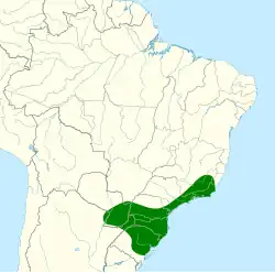 Das Verbreitungsgebiet des Brasilkauzes reicht von Ostbrasilien bis in den Süden von Paraguay und den äußerten Nordosten Argentiniens.[2] Er ist ein Standvogel, der Primär- und Sekundärwälder mit dichtem Unterholz besiedelt. Seine Höhenverbreitung reicht von der Tiefebene bis in Höhenlagen von 1.000 Meter über NN.