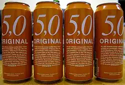 Zusammen mit der Brauerei Feldschlößchen hatte Oettinger auch die Markenrechte an „5,0 Original“ von Carlsberg übernommen, was zu einem Rechtsstreit mit Hamburger Designagentur Feldmann und Schultchen führte, der später außergerichtlich beigelegt wurde.[6] „5,0 Original“ war eine ungewöhnliche Produktpräsentation – hierbei ist der Alkoholgehalt des Bieres von 5,0 % namensgebend. Bei diesem Produkt wird vollständig auf Werbung und ein aufwändiges Verpackungslayout verzichtet. Ebendiese Strategie wird auch auf dem Etikett der Produkte erläutert. Das Bier wird in 0,5-Liter-Flaschen und -Dosen verkauft. Angeboten wird unter diesem Namen Pils, Exportbier, Hefeweizen, Helles, Citrus, Radler und Cola-Bier (die letzteren beiden unter dem Namen „2,5 Original“). Der Name der Brauerei erscheint nicht auf der Verpackung.