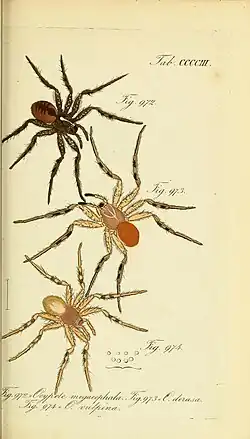 - ↑ Charles Athanase Walckenaer: Histoire naturelle des aranéides. IV, 2, Paris et Strasbourg, 1806.