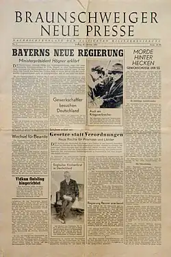Die „Braunschweiger Neue Presse“ wurde am 8. Januar 1946[1] durch die Braunschweiger Zeitung abgelöst, die zweite Zeitung in der britischen Besatzungszone.[2]