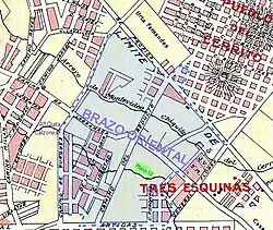 Die angrenzenden Stadtteile sind Atahualpa (Westen), La Figurita (Süden), Jacinto Vera (Süden), Mercado Modelo y Bolívar (im Südosten), Cerrito de la Victoria (im Nordosten) und Aires Puros (im Nordwesten). Eingefasst wird das als Wohnviertel dienende Brazo Oriental dabei vom Bulevar Artigas im Süden, der Avenida General Flores im Osten. Nördlich begrenzt der Bulevar José Batlle y Ordóñez, im Westen der Camino Burgues das Viertel.[1] Das Gebiet Brazo Orientals ist dem Municipio C zugeordnet.