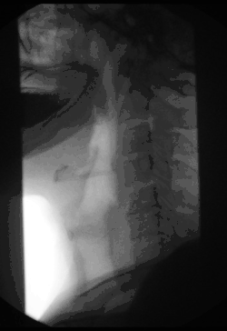 Bei Dysphagie wird der funktionelle Schluckablauf mit Darstellung der oralen, pharyngealen und ösophagealen Phase in zwei Ebenen (seitlich, anterior-posterior) untersucht. Wegen der großen Geschwindigkeit des Schluckablaufes erfolgt eine Aufzeichnung auf Film (Röntgenkinematographie) oder digital mittels Digital Spot Imaging bzw. Aufzeichnung auf Videobänder, um später den Schluckablauf in Zeitlupe oder Einzelbildern ansehen zu können. Der Vorteil der Filmaufnahme liegt in einer deutlich höheren örtlichen Auflösung mit bis zu 200 Bilder/s. Für digitale und Videoaufnahmen stehen 25–50 Bilder/s zur Verfügung. Verwendet werden Kontrastmittel unterschiedlicher Konsistenz bis hin zu Festkörpern („Bariumkekse“, „Bariumgelatinekugeln“), um die Funktion der Nahrungsaufnahme (flüssig-fest) simulieren zu können. Beurteilt werden die Fähigkeit, die Nahrung im Mund zu behalten (z. B. vorzeitiges, unkontrolliertes Ablaufen?), die Bewegung von Zunge, Gaumensegel und Unterkiefer zu Beginn des Schluckaktes, beim Einleiten des Abschluckens. Weiter dann der Verlauf im Rachen (einseitiges Schlucken?) mit besonderer Berücksichtigung des pharyngo-laryngealen Segmentes (Eindringen in den Kehlkopf oder weiter in die Luftwege?) und Übergang in die Speiseröhre. Wichtig auch, ob Reste im Sinus piriformis verbleiben (bei der Laryngoskopie als Speichelsee sichtbar). Im Bereich der Speiseröhre Beobachtung des Kontrastmitteltransports durch entsprechende Kontraktion der Speiseröhrenabschnitte und Beurteilung der Öffnung des unteren Ösophagussphinkters.