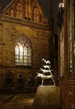 - Bronzestatue Die Bremer Stadtmusikanten von Christa Baumgärtel in Riga hinter der Petrikirche, 1990 gestiftet von der Partnerstadt Bremen[28]