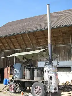 Der traditionelle „Störbrenner“ reist mit seiner fahrbaren Brennerei von Januar bis März den Bauernhöfen nach. Die Brennerei besteht aus einem mit dem Holz der Bauern angefeuerten Dampfkessel, zwei bis drei Brennhäfen (Druck 5 bar), der Rektifikationskolonne und dem Gegenstromkühler. Die Bauern bringen ihre Fässer mit den vergorenen Früchten, der Maische. Äpfel, Birnen und Quitten werden zuerst gebrannt, darauf folgen die Kirschen und am Schluss das übrige Steinobst. Das Aroma des gebrannten Schnapses hängt größtenteils von der Qualität der angelieferten Ware ab[20].