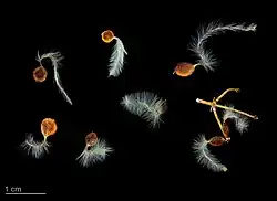 Die flachen, bis 5 Millimeter großen Achänen besitzen einen bis zu 2 Zentimeter langen, fedrigen Schweif (Schnabel), sie stehen zu mehreren in einer Sammelfrucht zusammen.[1][2]