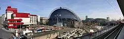 Der zentrale Omnibusbahnhof am „Breslauer Berg“ gelangte erst 1986 im Zuge des Neubaus von Philharmonie (Eröffnung am 14. September 1986) und Wallraf-Richartz-Museum & Fondation Corboud / Museum Ludwig (beide 6. September 1986) an seinen heutigen Standort. Unter dem Busbahnhof befindet sich eine zweistöckige Tiefgarage mit 400 Parkplätzen.[1] Er grenzt westlich an den im Oktober 1996 eröffneten Musical Dome. Die nach nur 6 Monaten fertiggestellte Membrankonstruktion in Glas-Stahl-Bauweise umfasst eine Grundfläche von 4.500 m² und bietet 1.769 Zuschauern Platz; sie ist damit der größte Theaterbau der Stadt. Die ursprünglich nur für das Musical „Gaudí“ als Provisorium erbaute Konstruktion fällt – nach mehreren Abrissplänen – voraussichtlich der künftigen Bauplanung zum Opfer. Durch den Bau der Nord-Süd-Stadtbahn kam es zur Stilllegung des U-Bahnhofs Breslauer Platz zwischen August 2007 und Dezember 2011, was zu erheblichen baubedingten Verkehrsbehinderungen auf dem Platz führte. Das im Jahre 2011 renovierte Wyndham Hotel in Nr. 2 ist nunmehr das vierte Hotel im Gebäude und besitzt 131 Zimmer.