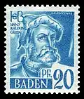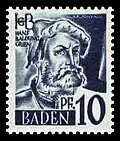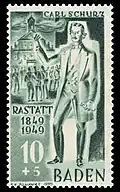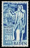 100. Jahrestag der Badischen Revolution | 10+5 Pf. | 24. August 1949 | 31. März 1950 | 400.000 | Jonynas | 50 |