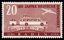 Durch Verfügung 191/1949 des Postzentralamtes der französischen Zone wurden ab dem 19. September 1949 die Briefmarken der Bundesrepublik Deutschland auch in Baden verkauft. Die Zwangszuschlagsmarke Notopfer Berlin musste am 1. und 2. Juli 1949 und dann ab 17. Juli 1949 bis 31. März 1956 verwendet werden. Laut Bad. Gesetz- und Verordnungsblatt 28/1949 vom 21. Juni 1949 waren die Einnahmen neben Berlin auch für Kehl bestimmt.[1]