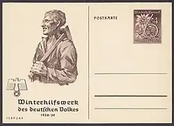 Sonderkarte zum 5. Jahrestag des 30. Januar 1933 | 6 + 4 | 26. Januar | 31.12.1939 | unbekannt | P 267 | |
