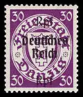 Mit Beginn des Zweiten Weltkrieges am 1. September und der Wiedereingliederung der Stadt Danzig ins Deutsche Reich wurden am 28. September 14 ursprüngliche Werte der Freien Stadt Danzig mit Aufdruck herausgegeben. Bereits am 18. September gab es im Reich zwei Sondermarken, die auf das Ereignis „Danzig ist Deutsch“ hinwiesen, was eine eindrucksvolle Leistung wäre, wenn die Vorbereitungen für Entwurf und Druck erst nach Kriegsausbruch begonnen haben sollten.[1]