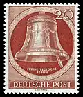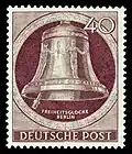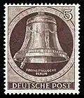 - ↑ a b Von der Freiheitsglocke wurden drei nahezu gleiche Markenserien herausgegeben, jeweils mit gleichen Werten und ähnlichen Farben, zwei Serien im Jahr 1951, die dritte Serie 1953. Dazu kommen noch jeweils eine Einzelmarke mit zusätzlichem Aufdruck zur Wahl des Bundespräsidenten 1954 und mit Zuschlag für die Berliner Hochwassergeschädigten 1956.