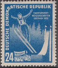 Die nun schon im dritten Jahrgang erschienene Messeausgabe wurde 1952 mit einem Motiv zum Schwermaschinenbau der Herbstmesse gewidmet. Fortgesetzt wurde auch die Serie zum Tag der Briefmarke mit einem 24 Pfennig-Wert. Weitere Ausgaben würdigten berühmte Komponisten, darunter Ludwig van Beethoven, der vor 125 Jahren verstorben war, und berühmte Persönlichkeiten aus Wissenschaft, Literatur und Kunst. Erstmals in einer bis 1957 erscheinenden Reihe kam im Mai 1952 eine Marke zur Internationalen Friedensfahrt zur Ausgabe, nachdem bereits Anfang des Jahres die zweiten Wintersportmeisterschaften der DDR in Oberhof Sportmotive ins Markenbild brachten.