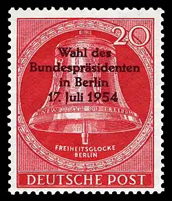 - ↑ Ein Wert der Serie Berliner Bauten (II) war bereits 1953 erschienen, darum zählt diese Marke philatelistisch zum Jahrgang 1953; vgl. Michel Deutschland-Spezial 2023. Band 2: Ab Mai 1945 (Alliierte Besetzung bis Bundesrepublik Deutschland). Schwaneberger Verlag, Germering 2023, ISBN 978-3-95402-442-1, S. 662.