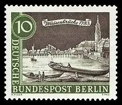 - Bild: Eine bearbeitete Abbildung der genannten Marke. Das Verhältnis der Größe der Briefmarken zueinander ist in diesem Artikel annähernd maßstabsgerecht dargestellt. Sollten keine Marken abgebildet sein, liegt es daran, dass das Urheberrecht des Künstlers noch nicht erloschen ist.