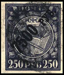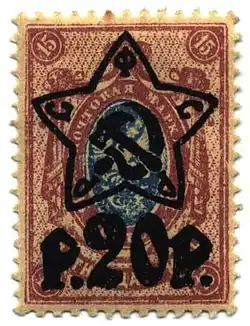 1917 ließ die Übergangsregierung die alten zaristischen Entwürfe nachdrucken, verkaufte diese jedoch ungezähnt. Die ersten Briefmarken der UdSSR (Union der Sozialistischen Sowjetrepubliken) erschienen 1918. Es gab zwei verschiedene Werte und sie zeigen ein Schwert, das eine Kette durchschlägt. Von diesen Marken blieb zwar eine große Stückzahl erhalten, aber sie wurden wenig verwendet und gestempelte Stücke sind wertvoller als ungebrauchte. Die nächsten Briefmarken wurden 1921 herausgegeben, nachdem die Inflation begonnen hatte. Der Satz umfasste Werte zwischen 1 und 1.000 Rubel. In den Folgejahren wurden diese Briefmarken mit verschiedenen Nennwerten bis zu 100.000 Rubel überdruckt. Infolge einer Währungsreform 1922, bei der das Geld zum Kurs von 10.000:1 getauscht wurde, entstanden neue Briefmarken im Wertbereich zwischen 5 und 200 Rubel. Darunter befand sich ein Satz zur Würdigung des fünften Jahrestags der Oktoberrevolution – zaristische Briefmarken, die mit einem fünfzackigen Stern mit Hammer und Sichel überdruckt worden waren. Des Weiteren erschienen in diesem Jahr Briefmarken mit dem Porträt eines Arbeiters, eines Bauern und eines Soldaten. Abwandlungen dieser Porträtmotive wurden die gesamten 20er Jahre über herausgegeben.
