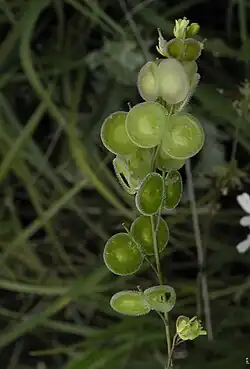 Die meist kurz gestielten, flachen Schötchen weisen einsamige Fruchtfächer (Loculi) auf, die jeweils zu zweit angeordnet sind und so erscheinen die Früchte brillenartig.[2] Die Fruchtklappen sind kahl oder behaart. Der Griffel ist oft länger als die Frucht und endet in einer einfachen Narbe.[1] Die zwei geflügelten Fruchtfächer umhüllen den Samen auch wenn sie bei Reife abfallen.[1] Die Samen sind ungeflügelt.