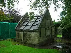 Das Bauwerk befindet sich am Rand eines Friedhofs im Zentrum von Largs. Es stammt aus dem Jahre 1634 und wurde ursprünglich für die Familie Kelso errichtet. Im Jahre 1695 wurde es das Familienmausoleum der Familie Brisbane. Das Mauerwerk des länglichen, freistehenden Gebäudes besteht aus fein behauenen Steinquadern. Traufseitig verlaufen Dachgesimse. Eine heraldisch gestaltete Platte oberhalb des verschlossenen Portals an der Ostseite weist das Baujahr aus. Außerdem zeigt sie die Initialen „P.S“ und „I.S“ von Mitgliedern der Shaw-Familie. Auf einer verzierten Tafel auf der gegenüberliegenden Seite sind die Monogramme „P.S.“, „I.M.“ und „I.S“ verzeichnet. Verschiedene mit Gesimsen versehene Marmortafeln an den Außenwänden stammen aus dem 19. Jahrhundert. Das steile Satteldach ist mit großen Schieferplatten eingedeckt. Die Giebelflächen ragen über das Dach hinaus und weisen einen höheren Neigungswinkel auf. Dies könnte die Folge eines Umbaus im späten 17. Jahrhundert sein.[1]