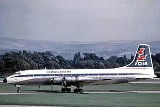 - Am 11. November 1960 kam es bei einer Britannia 102 der British Overseas Airways Corporation (BOAC) (G-ANBC) zum Verlust von Hydraulikdruck, weshalb das Fahrwerk nicht ausgefahren und verriegelt werden konnte. Die Landung auf dem Flughafen Khartum (Sudan) erfolgte auf einem Landestreifen neben der eigentlichen Landebahn, wobei am Flugzeug Totalschaden entstand. Alle 27 Insassen, 9 Besatzungsmitglieder und 18 Passagiere, überlebten.[9]