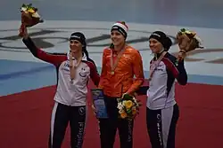 - ↑ a b Philip Hersh: Fire on ice: After Sochi shutout, U.S. speedskater Bowe heating up, building confidence for next shot. In: Chicago Tribune, 27. Februar 2015, S. 10. Abgerufen am 27. Februar 2022 via ProQuest.