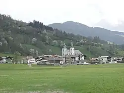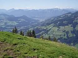 ![]() Das Brixental Richtung Osten mit Westendorf (vorne) und Brixen im Thale | ||