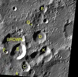 Es gibt auch einen Mondkrater D. Brown auf der erdabgewandten Südhalbkugel, der nach dem US-amerikanischen Astronauten David McDowell Brown benannt ist. Hier könnte eine Verwechselungsgefahr mit dem Nebenkrater Brown D bestehen.