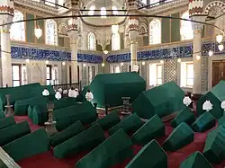 - ↑ İsmail Orman: Murad III Türbesi. In: Türkiye Diyanet Vakfı İslâm Ansiklopedisi. Bd. 31, Istanbul 2006, S. 176 f. (PDF-Datei; 1,7 MB); zu der Zahl der in der Türbe Murads III. bestatteten Personen siehe Ḥüseyin Ayvānsarāyī: Ḥadīḳatü l-cevāmiʿ. Bearbeitet von ʿAlī Sāṭıʿ Efendi. Bd. 1, Maṭbaʿa-i ʿāmire, Istanbul 1281 (1864), S. 6.