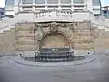 Wandbrunnen mit Steinschale und Maske als Schlussstein | Architektur: Friedrich Ohmann | 1906 | An der Terrasse, die das Palmenhaus vom Burggarten abhebt | |