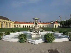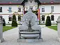 Brunnen mit Bleifiguren und Becken aus Wöllersdorfer Stein. | Johann Martin Fischer | 1804 | Mitte des 16. Jahrhunderts soll es bereits einen Brunnen an dieser Stelle gegeben haben. |